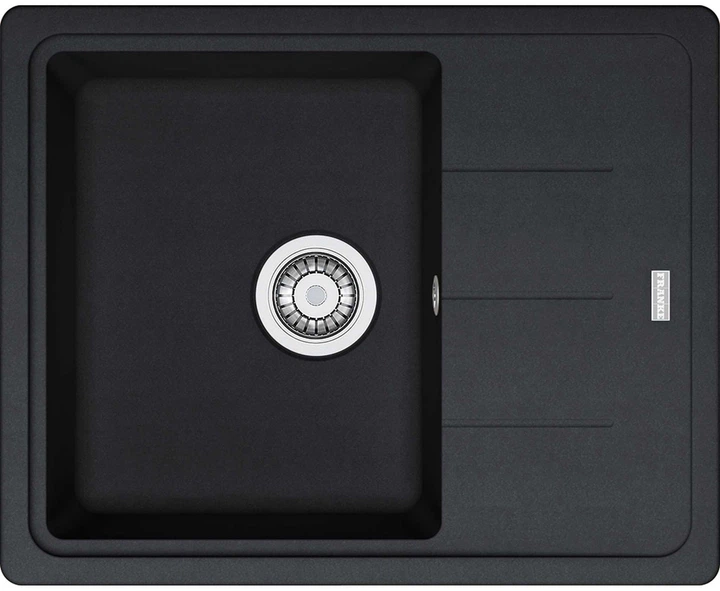 Zlew kuchenny Franke Basis BFG 611-62 to jednokomorowy, prostokątny model podblatowy wykonany z granitu, który zapewnia wysoką trwałość, odporność na zarysowania, szok termiczny, promieniowanie ultrafioletowe i domowe środki chemiczne. Posiada odwracalną konstrukcję, która umożliwia montaż skrzydła po lewej lub prawej stronie. Skrzydło posiada lekkie nachylenie, ułatwiające odpływ wody, i może służyć jako suszarnia lub miejsce do obróbki żywności. To praktyczne rozwiązanie do nowoczesnej kuchni, łączące funkcjonalność, styl i niezawodność.