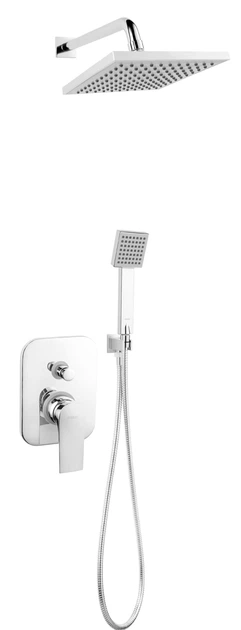 Zestaw natryskowy podtynkowy z baterią Ferro Squerto SET-SQ1-P to nowoczesne i stylowe rozwiązanie łazienkowe wykonane z wysokiej jakości mosiądzu z chromowanym wykończeniem, które gwarantuje trwałość, odporność na korozję i zachowanie połysku przez długi czas. Zestaw zawiera baterię podtynkową z niezawodną głowicą ceramiczną do płynnej i precyzyjnej regulacji temperatury i ciśnienia wody, kwadratową głowicę natryskową z uchwytem ściennym oraz słuchawkę prysznicową z elastycznym wężem i uchwytem, co zapewnia maksymalny komfort w codziennym użytkowaniu. Montaż podtynkowy pozwala stworzyć minimalistyczne i eleganckie wnętrze bez zbędnych detali. Ergonomiczna konstrukcja harmonijnie komponuje się z nowoczesnym stylem aranżacji łazienki. System spełnia europejskie normy jakości i bezpieczeństwa. To idealny wybór dla osób ceniących praktyczność, wygodę i estetykę w codziennym użytkowaniu.