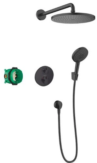 Zestaw prysznicowy podtynkowy z baterią termostatyczną Hansgrohe Croma to nowoczesne i funkcjonalne rozwiązanie łazienkowe wykonane z wysokiej jakości materiałów o matowym wykończeniu, które zapewnia trwałość, odporność na korozję i stylowy wygląd. Zestaw zawiera baterię termostatyczną Ecostat umożliwiającą precyzyjną kontrolę temperatury i stabilny przepływ wody, wbudowany system montażu podtynkowego pozwalający na stworzenie minimalistycznego wnętrza bez zbędnych detali, dużą głowicę prysznicową Croma o średnicy 280 mm z równomiernym rozprowadzaniem wody dla wygodnego prysznica, rączkę prysznicową z wieloma trybami strumienia i elastyczny wąż zapewniający maksymalną wygodę w codziennym użytkowaniu, ergonomiczny design zapewniający łatwą kontrolę i komfort, montaż jest kompatybilny z większością standardowych systemów instalacyjnych, stylowy, minimalistyczny wygląd harmonijnie komponuje się z każdym nowoczesnym wnętrzem łazienki, system spełnia europejskie normy jakości i bezpieczeństwa, jest idealnym wyborem dla osób ceniących wygodę, praktyczność, nowoczesną technologię i estetykę w codziennym użytkowaniu.