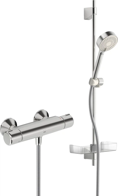 Termostatyczny zestaw prysznicowy Oras Nova (7413U) — to wysokiej jakości, niezawodne rozwiązanie, zaprojektowane w Finlandii i wykonane z mosiądzu w stylowym chromowanym kolorze. Komplet o wadze 3.66 kg zawiera baterię termostatyczną, drążek prysznicowy 720 mm, wąż (1750 mm), regulowany uchwyt oraz mydelniczkę. Słuchawka prysznicowa ma trzy rodzaje strumienia (Normalny, Orzeźwiający, Relaksujący) i jest wyposażona w funkcję Eco Flow z ograniczeniem przepływu do 9.6 l/min. Dla bezpieczeństwa użytkownika przewidziano bezpieczną blokadę temperatury na 38°C, co czyni ten zestaw idealnym wyborem dla całej rodziny.
