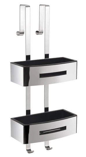 Podwójna, prostokątna półka prysznicowa Poseidon, polerowana/czarna.