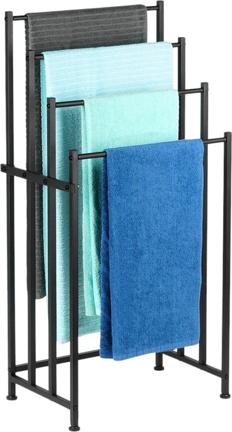 Wolnostojący wieszak na ręczniki marki Vilde o wymiarach 45.5 x 29 x 94.5 cm to wyjątkowo praktyczne rozwiązanie do każdej łazienki lub sypialni. Wykonany z najwyższej jakości metalu malowanego proszkowo na czarny kolor, charakteryzuje się solidną i stabilną konstrukcją. Wyposażenie w cztery poprzeczki rozmieszczone na różnych poziomach pozwala na wygodne przechowywanie i suszenie wielu ręczników jednocześnie, zapewniając im odpowiednią cyrkulację powietrza i ułatwiając codzienne użytkowanie.