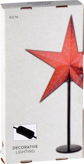 Lampka stołowa w formie gwiazdy na podstawie. Utrzymana w modnym, czerwonym i czarnym kolorze. Nada wyjątkowego charakteru każdemu wnętrzu. Postawiona w salonie będzie tworzyć niepowtarzalny klimat. Świetnie sprawdzi się jako lampka nocna postawiona w sypialni. Kształt gwiazdy nadaje jej oryginalnego wyglądu. Zapakowana w pudełko, stanowi wyjątkowy pomysł na prezent. Wyprodukowano zgodnie z europejskimi standardami.
