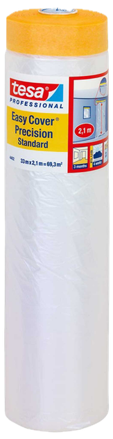 Taśma Tesa 33 m × 210 cm to praktyczne rozwiązanie do ochrony podłóg, mebli i innych powierzchni podczas remontów, malowania i prac budowlanych. Produkt składa się z wytrzymałej folii ochronnej połączonej z taśmą klejącą, dzięki czemu łatwo przykleja się do różnych powierzchni i chroni je przed: