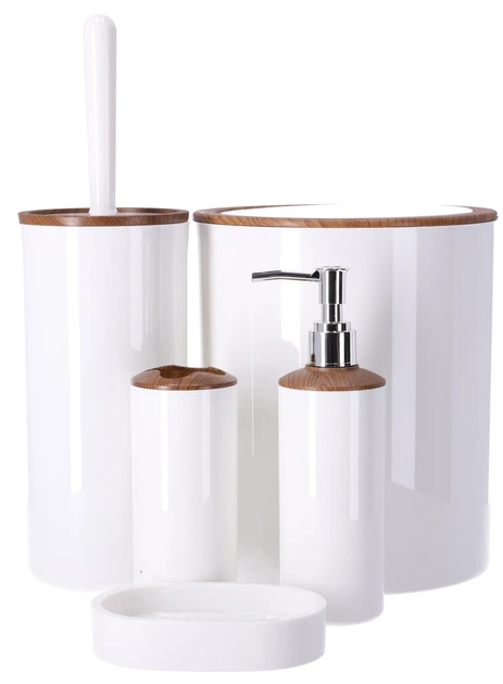 Zestaw akcesoriów łazienkowych Hedo 89695 Berretti 5 elementów Biały + drewno (5902041307887).