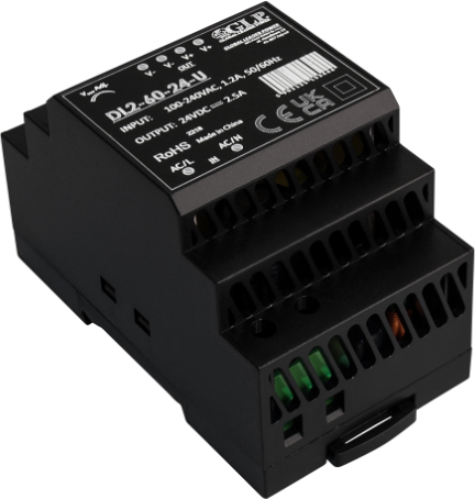 Zasilacz na szynę DIN GLP DL2-60-24-U to kompaktowe rozwiązanie przeznaczone do instalacji przemysłowych oraz systemów automatyki. Zapewnia stabilne napięcie wyjściowe 24 V DC przy mocy 60 W i prądzie 2.5 A, co pozwala na zasilanie sterowników, czujników, modułów kontrolnych i innych urządzeń montowanych w rozdzielniach.