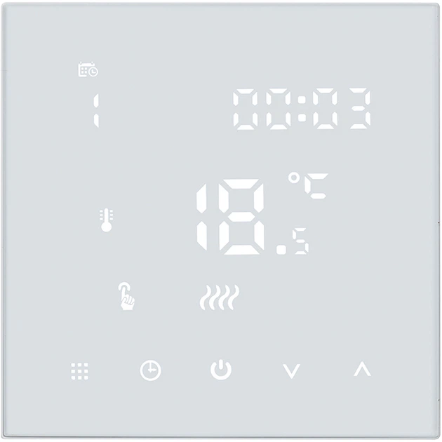 Bezprzewodowy termostat do elektrycznego lub wodnego ogrzewania podłogowego, programowalny. Termostat można sterować głosowo za pomocą Amazon Alexa lub Asystenta Google, podłączonego do systemu domowego. Dodatkowo, aplikacja mobilna (iOS i Android) umożliwia regulację temperatury nawet poza domem.