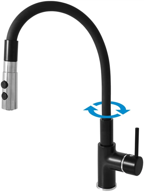 Bateria kuchenna Domoletti Seina DSE919.5/12CMATC to model jednouchwytowy z wysoką, obrotową wylewką, wykonany w nowoczesnym, matowym czarnym kolorze, który łączy w sobie stylowy design, praktyczność i trwałość. Bateria wykonana jest z wytrzymałego mosiądzu i posiada trwałą powłokę zabezpieczającą przed korozją i uszkodzeniami mechanicznymi. Wysoka wylewka pozwala na wygodne mycie dużych garnków i napełnianie głębokich pojemników, a funkcja obrotowa zwiększa komfort pracy z podwójnym zlewem. Montaż odbywa się w standardowym otworze w blacie lub zlewie, co zapewnia prostą i niezawodną konstrukcję. Dzięki uniwersalnemu wzornictwu i matowemu, czarnemu wykończeniu harmonijnie komponuje się z nowoczesnymi wnętrzami kuchennymi, zwłaszcza w stylu minimalistycznym lub industrialnym. To praktyczne rozwiązanie do codziennego użytku, zapewniające komfort, funkcjonalność i estetykę.
