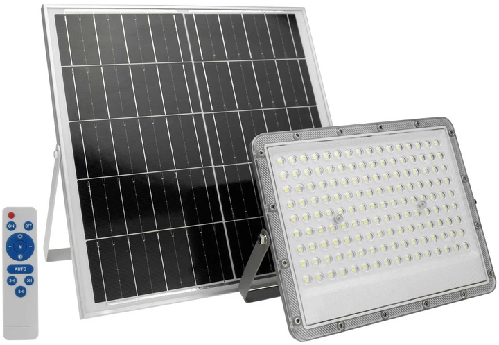 Прожектор Spectrum SLI029059CW — це світлодіодний сонячний прожектор потужністю 50 Вт із холодним білим світлом 6500 K та світловим потоком близько 500 лм, оснащений мікрохвильовим датчиком руху та пультом дистанційного керування. Модель працює автономно завдяки монокристалічній сонячній панелі, що дозволяє використовувати її без підключення до електромережі. Корпус виконаний у сірому кольорі з міцного матеріалу, стійкого до атмосферних впливів, ступінь захисту IP65 гарантує повну пилонепроникність та захист від струменів води, що робить прожектор придатним для використання на подвір’ї, фасаді будинку, саду чи парковці. Кут освітлення становить 100°, термін служби джерела світла сягає 17 000 годин, що забезпечує довговічність та економічність. Це сучасне рішення для зовнішнього освітлення, яке поєднує енергоефективність, автономність та практичність.