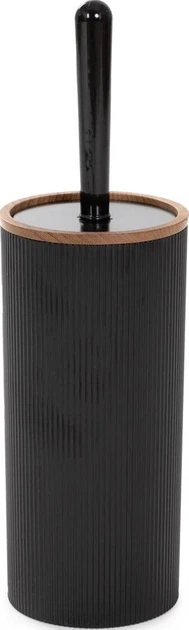 Міцна і функціональна туалетна щітка Homla Diall в стильному контейнері з кришкою. Вся конструкція виконана в чорному кольорі, а ребристий підставник оздоблений краєм, що імітує дерево, що чудово доповнює візуальний ефект. Розташована поблизу туалету, вона буде не тільки корисним аксесуаром, але й вишуканим доповненням до інтер'єру ванної кімнати.