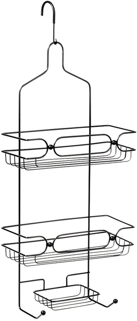 - Кріплення на душову кабіну – Зручна та практична полиця для ванної кімнати, яку можна підвісити на скло душової кабіни. Завдяки практичному гачку, гачок також має гумове покриття, яке запобігає ковзанню полиці та подряпинам на склі душової кабіни. Розмір полиці – 61 x 28.5 x 12.5 см, а висота разом з гачком – 70 см. Вона має дві полиці, дозатор для мила та два гачки для інших аксесуарів.