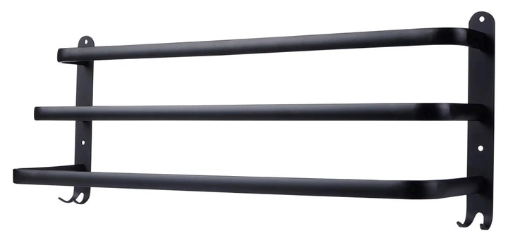 Вішалка має три поперечини, на яких зручно повісити рушники. Знизу є чотири гачки, які можуть слугувати додатковим місцем для рушників або аксесуарів для ванної кімнати, наприклад, губок.