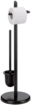 Uchwyt na papier toaletowy ze szczotką Kela Ken KE-20542 to stylowy i praktyczny dodatek łazienkowy, który łączy w sobie uchwyt na papier i szczotkę toaletową w jednym, wygodnym designie. Produkt ma wysokość 73 cm i średnicę 22 cm, co zapewnia stabilność i komfort użytkowania nawet w małych łazienkach. Wytrzymały, malowany proszkowo metal gwarantuje trwałość, a matowy, czarny kolor nadaje nowoczesny, elegancki wygląd. Wyjmowany plastikowy pojemnik na szczotkę ułatwia pielęgnację i utrzymanie higieny, a okrągła, ciężka podstawa z gumowaną powłoką zapewnia niezawodną stabilność i chroni podłogę przed zarysowaniami. To funkcjonalne i stylowe rozwiązanie, które pomoże utrzymać porządek i harmonijnie dopełni wnętrze łazienki.