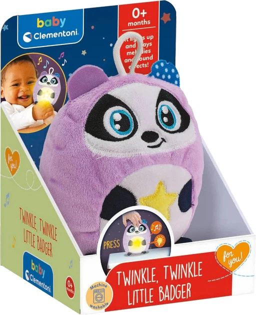 Lampka nocna dla dzieci Clementoni Błyszcz, błyszcz, mały rozrabiaka to kolejna odsłona znanej i cenionej serii Twinkle Twinkle, tym razem w formie uroczego borsuka. Zabawka łączy funkcję miękkiej przytulanki z delikatnym światłem nocnym, pomagając dziecku wyciszyć się i spokojnie zasnąć.