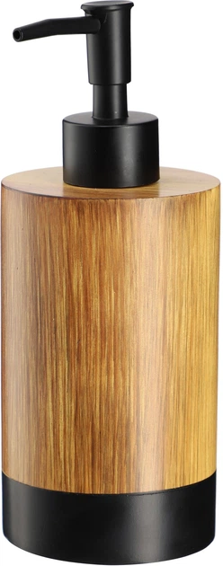 Диспенсер для мила Laon двоколірний – дизайн під дерево доповнений чорними елементами, що надає йому дещо строгого характеру. Цей виріб ідеально підходить для сучасних інтер'єрів, особливо тих, що оформлені в стилі лофт. Він має брутальний та дещо чоловічий характер, тому його люблять чоловіки. Важливо, що диспенсер для мила не потребуватиме багато уваги. Його кругла поверхня стійка до пилу, тому він довго збереже свій зовнішній вигляд.
