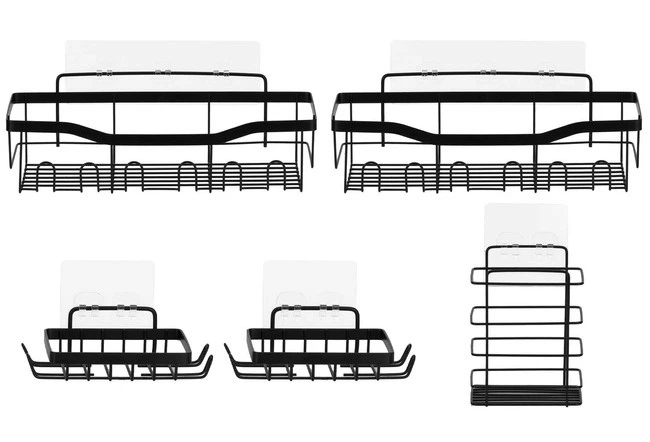 Набір з п'яти чорних полиць для ванної кімнати - це рішення, створене для максимального впорядкування простору ванної кімнати. Завдяки п'яти окремим елементам полиці можна вільно розміщувати в різних місцях душової кабіни, адаптуючи їх розташування до індивідуальних потреб мешканців будинку. Кожна полиця забезпечує стабільну поверхню для зберігання шампунів, гелів, бальзамів або аксесуарів для ванної. Чорне оздоблення надає набору елегантного, мінімалістичного стилю, який чудово вписується в сучасні інтер'єри. Підвісна форма полиць дозволяє отримати додатковий простір, не займаючи місця на підлозі. Ажурні стінки сприяють швидкому відтоку води, завдяки чому косметика не залишається у вологому стані. Кожен елемент є легким, що полегшує монтаж і регулювання розміщення. Полиці допомагають навести порядок, усуваючи необхідність тримати продукти на краях кабіни. Комплект дозволяє створювати індивідуальні конфігурації від вертикального розташування до розміщення на декількох стінах. Чорний колір чудово маскує дрібні сліди від води. Полиці можна використовувати не тільки в душі, але й біля ванни або в пральні. Ажурна конструкція гарантує хорошу вентиляцію та легкість у догляді. П'ять елементів дозволяють розділити косметичні засоби різних людей, завдяки чому кожен має свій простір. Полиці міцні та стійкі до впливу вологи. Їх розташування можна змінювати залежно від потреб, що підвищує функціональність ванної кімнати. Це комплексне рішення, яке дозволяє створити прозору та зручну зону для купання.