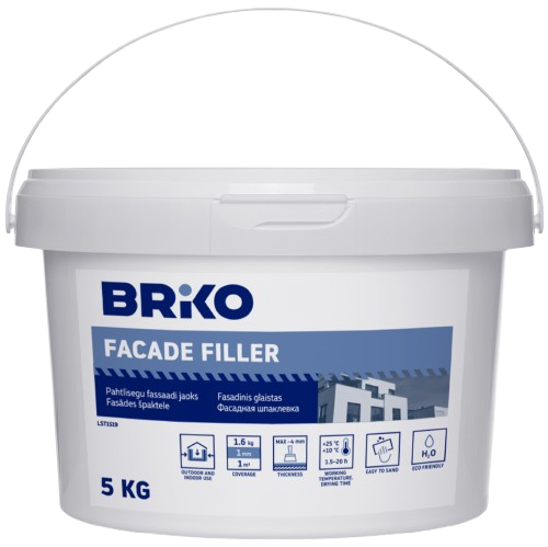 Wysokiej jakości szpachlówka marki Briko przeznaczona do wyrównywania i wykańczania elewacji. Szpachlówka jest łatwa do nakładania i szlifowania. Nadaje się do prac wewnętrznych i zewnętrznych. Szpachlówka zawiera również środki antyseptyczne, które chronią przed powstawaniem pleśni i grzybów.
