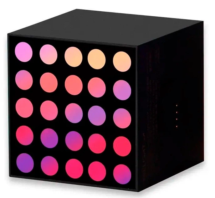 Настільний атмосферний світильник матричний Yeelight Cube YLFWD-0007 (6924922216933) (базовий комплект, Wi-Fi) - це настільний атмосферний світильник-куб зі світлодіодною матрицею 5×5 створює ефект “піксельного” освітлення. Ви можете відображати кольори, анімації, символи чи навіть графіку — він перетворює простір на динамічне світлове полотно. Підтримує Wi-Fi-керування, інтеграцію із системами «розумного дому» та дозволяє будувати композиції із кількох кубів для масштабного ефекту.